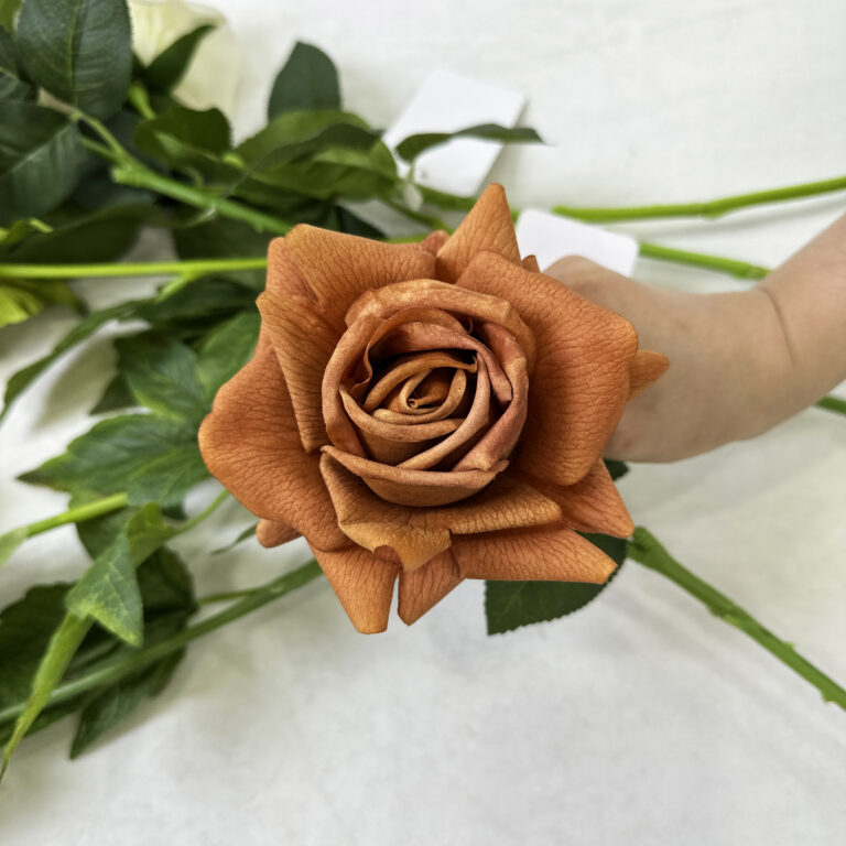 GNW Brown Artificial Single Rose Real Touch GJY-07
