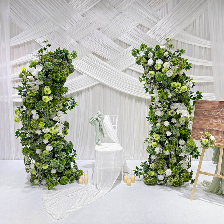 GNW New Arrival Green Series Artificial Silk Pillars For Wedding Party Home Decoration