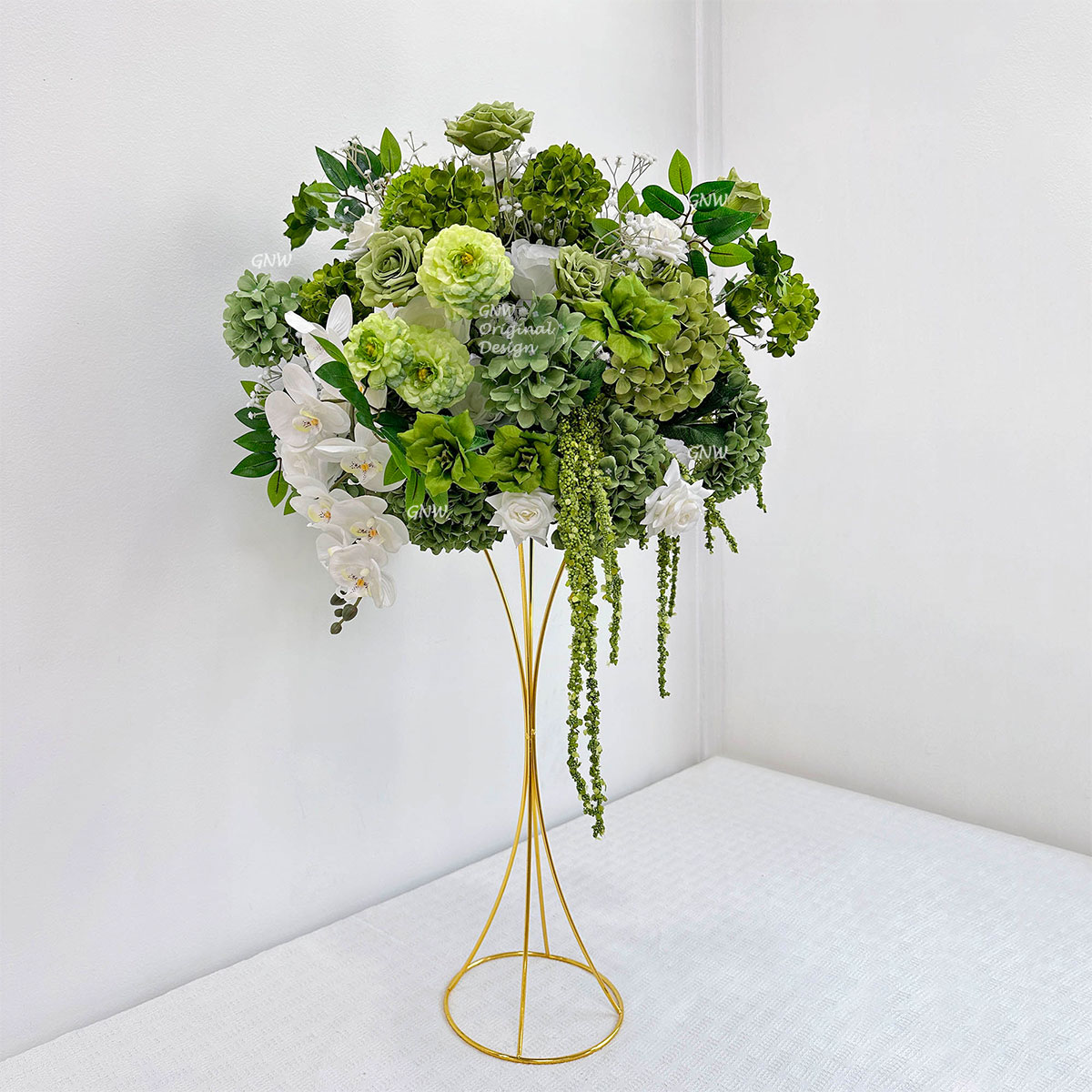 GNW New Arrival Green Series Artificial Silk Table Flower Ball For WDT Wedding Decor Trade Supplier